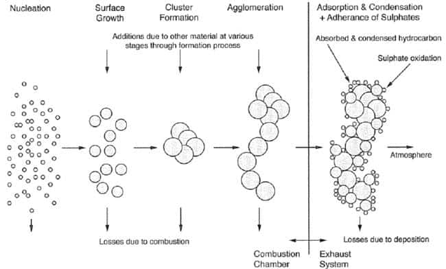 Figure 45 – PM formation process during and after the combustion process.